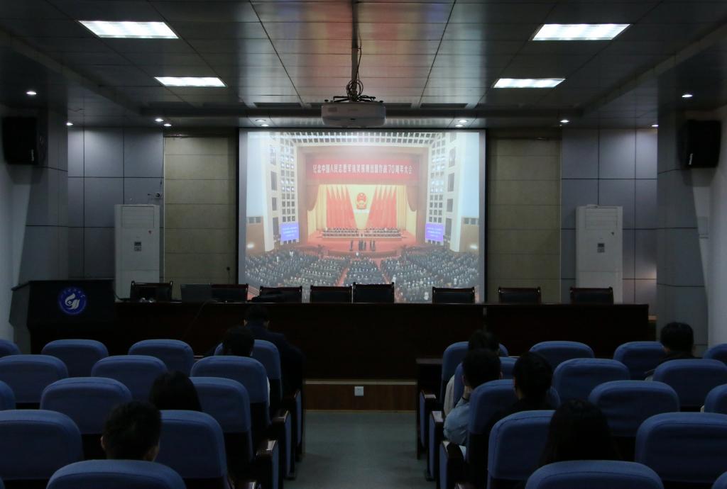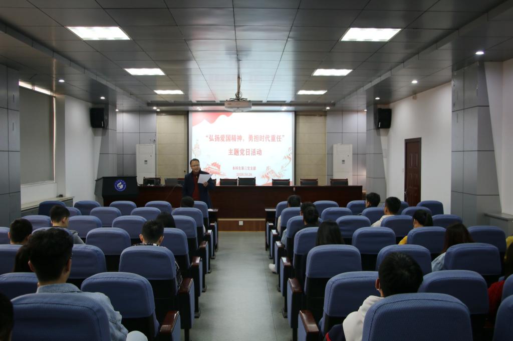 在中国人民志愿军抗美援朝出国作战70周年之际,为了铭记历史,致敬英雄,深化“四史”学习教育,10月28日下午,beat365在线唯一官网本科生第三党支部在J15-219报告厅开展了“弘扬爱国精神,勇担时代重任”主题党日活动,全体党员参加。