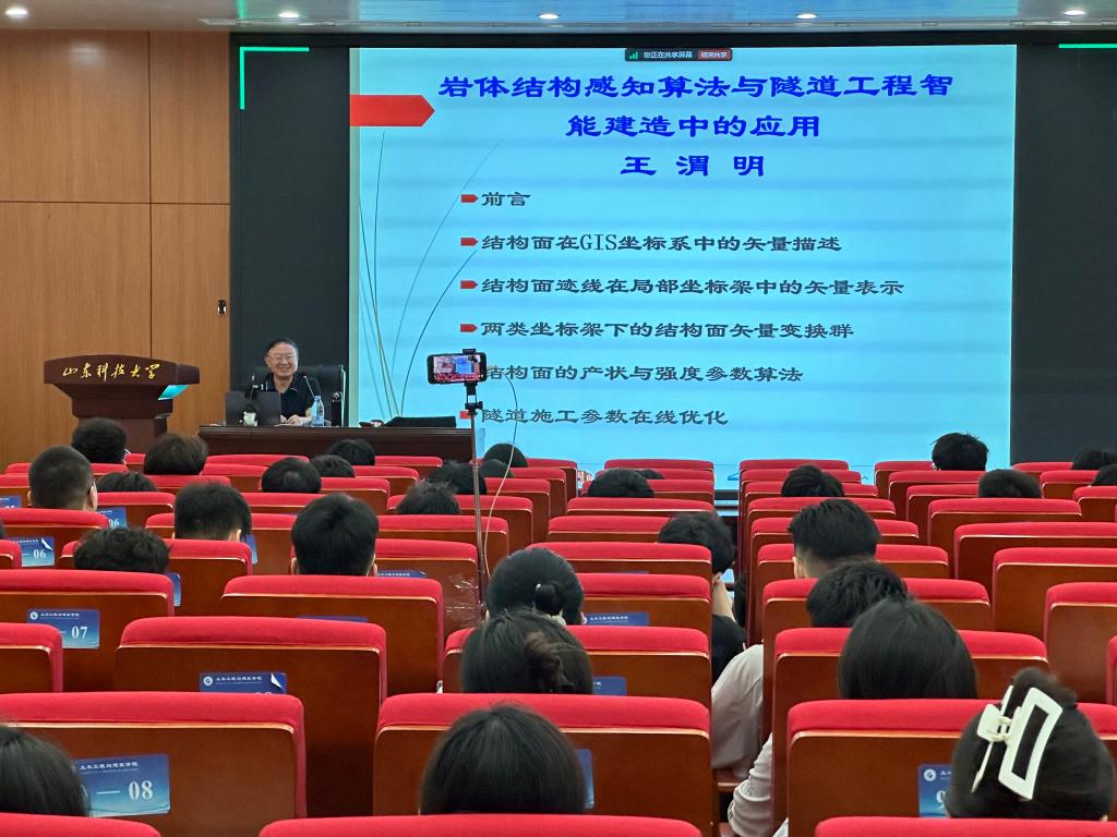 此次报告将土木相关专业知识与国家政策和智能建造的未来发展方向紧密结合,加深了同学们对岩土结构与隧道工程知识的理解,同时也激发了广大师生对地下工程的深入探讨,为未来的科学研究和躬行实践奠定良好基础。