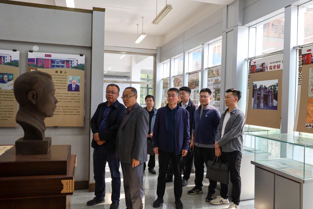 一行人先后参观了beat365在线唯一官网院史馆、实验中心。在院史馆,王崇革详细介绍了beat365在线唯一官网的发展历程、学科建设以及杰出校友等方面的情况。在实验中心,李为腾详细介绍了各个实验区域的功能和各个实验设备用途。
