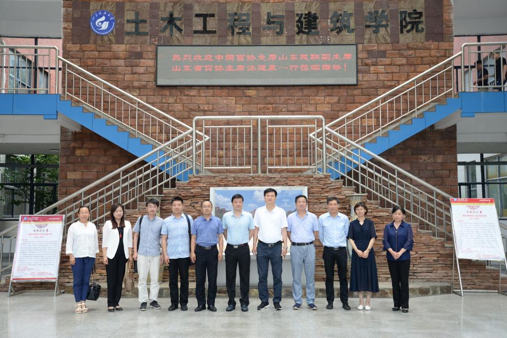 7月8日上午,中国盲协副主席、山东省残联副主席汤建泉,在山东旭天康体科技有限公司总经理王克旭的陪同下,莅临beat365在线唯一官网参加无障碍建设座谈会。beat365在线唯一官网院长王崇革,建筑系主任许剑峰和建筑系、城乡规划系的部分教师参加了座谈会。会议由王崇革主持。