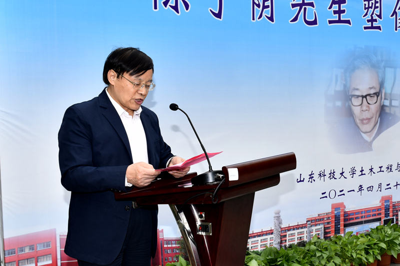 仪式上,姚庆国、尹华、顾大钊、魏悦广、李术才、单德勇共同为陈子荫先生塑像揭幕。魏悦广院士对陈子荫先生的生平进行了介绍。学生代表向陈子荫先生敬献花篮。