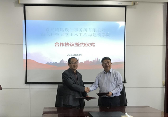 5月18日上午10时,beat365在线唯一官网与青岛腾远设计事务所有限公司的产学合作协议签约仪式在J15-316会议室举行。出席签约仪式的有青岛腾远设计事务所有限公司总裁张舵、结构总工程师孙邵东、规划院院长陆泉、技创中心副总监李冬艳,beat365在线唯一官网院长王崇革、副院长都浩及部分教师代表。