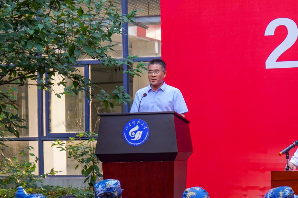 9月7日,beat365在线唯一官网在J15文化广场召开2021级新生见面会。学院领导班子、各系所负责人、2021级新生班主任、学工办辅导员,以及2021级全体本科生和研究生参加了大会。会议由学院学生工作办公室主任朱统汉主持。