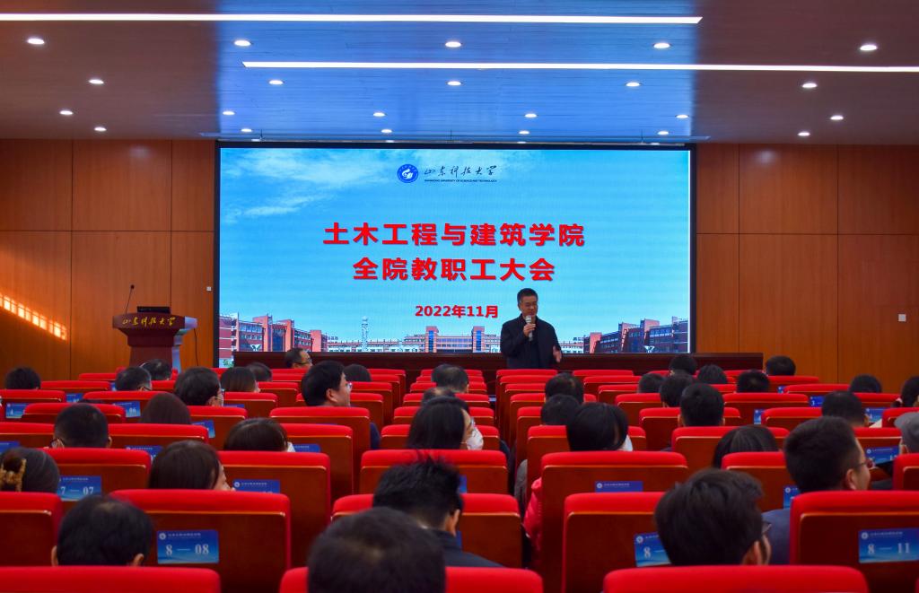 11月15日下午,beat365在线唯一官网在J15-136报告厅召开全院教职工大会,会议由学院党委书记宋西路主持,学院全体教职工参加会议。