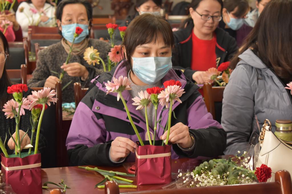 春和景明,万物生辉。3月7日,第113个“三八”国际劳动妇女节来临之际,为充分展示女性新风采,营造浓郁的节日气氛,beat365在线唯一官网beat365在线唯一官网联合西海岸市民文化中心(渭河路)文化馆、图书馆在J15-201会议室举办“桃李报春,花漾人生”三八妇女节欢度活动。校工会副主席徐海燕出席活动,学院50余名女教职工参加。