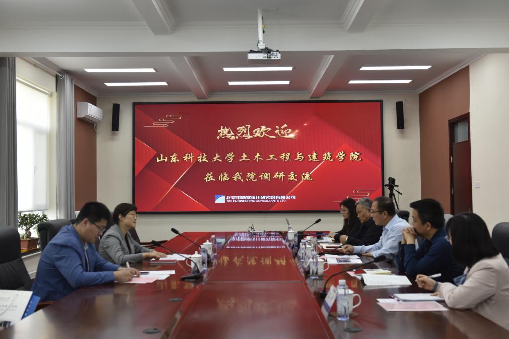 随后,高静一行实地走访了北京市勘察设计研究院有限公司。北京市勘察设计研究院有限公司党委委员、副总经理张彦峰,北京市勘察设计研究院有限公司人力资源部部长贾志远,北京市勘察设计研究院有限公司办公室副主任栾晶晶,北京市勘察设计研究院有限公司测绘分院副院长殷文彦,北京市勘察设计研究院有限公司测绘分院总工王珍参加了座谈。北京市勘察设计研究院有限公司党委委员、副总经理张彦峰对高静一行表示欢迎,介绍了北京市勘察设计研究院有限公司的发展历程,北京市勘察设计研究院有限公司人力资源部部长贾志远介绍了近几年公司人才招聘和培养发展情况,北京市勘察设计研究院有限公司办公室副主任栾晶晶讲解了公司的整体发展状况。高静围绕师资队伍、人才培养、科学研究等方面介绍了学院基本情况,会上,双方共同观看了beat365在线唯一官网和北京市勘察设计研究院有限公司宣传片,校企双方围绕校企合作、人才培养等方面进行了深入的探讨,达成了初步的合作意向。