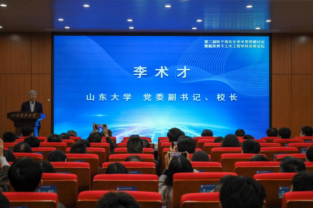 曾庆田在致辞中对参加会议的专家、校友以及合作单位代表表示欢迎,介绍了学校基本情况与近年来取得的成绩。他表示陈子荫先生学识渊博,一生关爱学生,培养出了以李术才院士为代表的一大批高层次人才,要传承和发扬好陈子荫学术思想,并以此次会议为契机对新形势下土木工程学科发展进行交流研讨,推动土木工程学科创新发展。