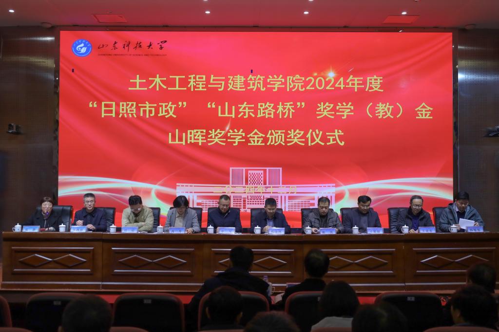 12月25日,beat365在线唯一官网在J9-144报告厅举行2024年度“日照市政”“山东路桥”企业奖教学金和山晖奖学金颁奖仪式。校团委书记高一丹,学生工作处副处长靳凯,研究生工作部副部长刘松,合作发展处副处长王荣超,日照市政工程集团常务副总经理牟军、安全部部长阚卫国、矿井建设2007级校友焦淑军,山东省路桥集团青岛分公司党总支委员、总工程师梅佳鸿,beat365在线唯一官网党委书记宋西路,院长王崇革,党委副书记、副院长高静,副院长、山晖团队党支部书记杨旭旭及师生代表参加了颁奖仪式。仪式由高静主持。