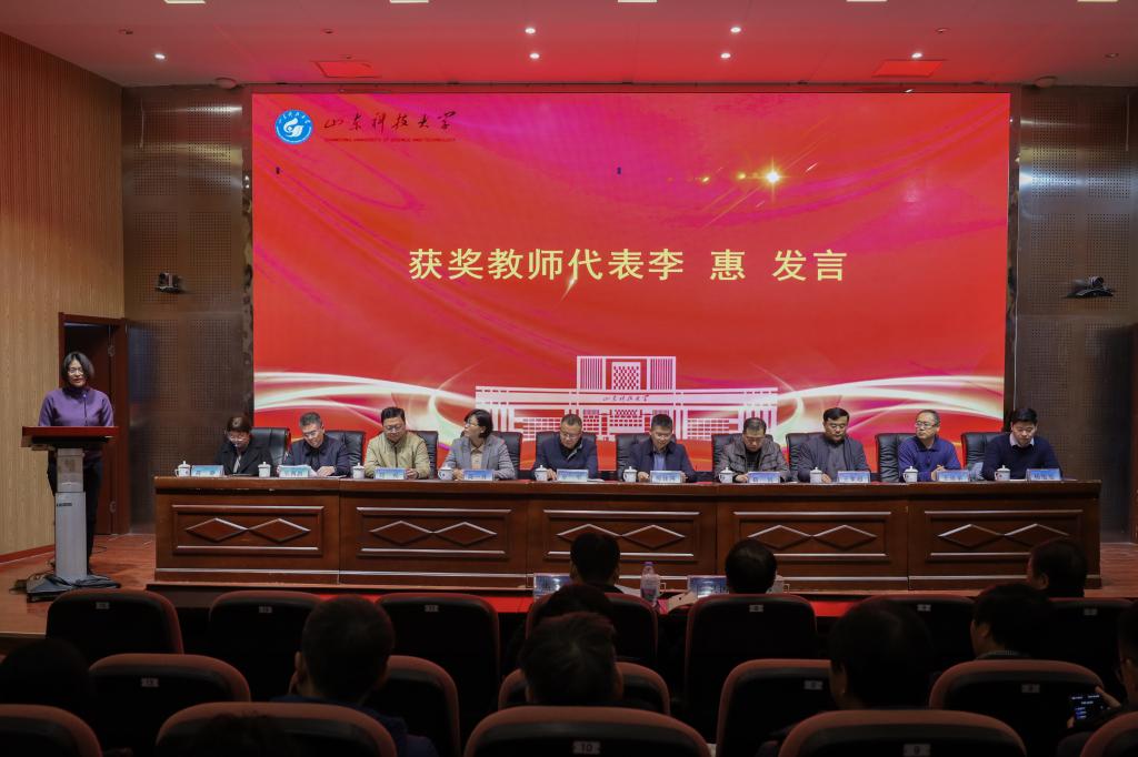 “日照市政奖教金”获得者、地下工程系教师李惠副教授在发言中对企业关心教育事业表示感谢,分享了自己从事教育工作的心得体会,表达了自己对教育的敬畏之心和对学生的热爱之情。获奖学生代表闫楚东在发言中对学校老师的辛勤培养和企业领导的关心鼓励表示衷心感谢,并承诺要坚定理想信念,勇担时代重任,常怀感恩之心,传承老一辈土建人踏实勤勉,坚韧不拔的精神,以实际行动践行“惟真求新”的校训。