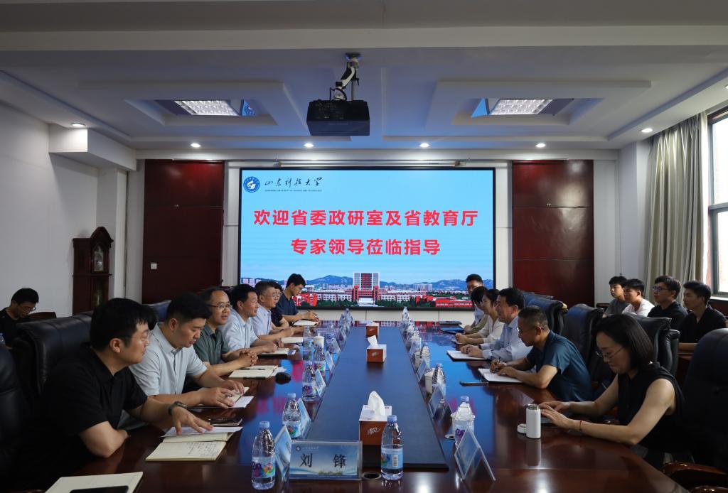7月8日,山东省委政研室政治研究处处长周明昆、省教育厅高等教育处一级主任科员潘妍利一行莅临beat365在线唯一官网,开展新工科建设专项调研。教务处处长樊建聪,beat365在线唯一官网党委书记宋西路、院长王崇革、副书记兼副院长高静,副院长杨旭旭、都浩、秦哲,党委委员代朋、建工系刘锋教授及相关学科的师生代表陪同调研并参加座谈会。