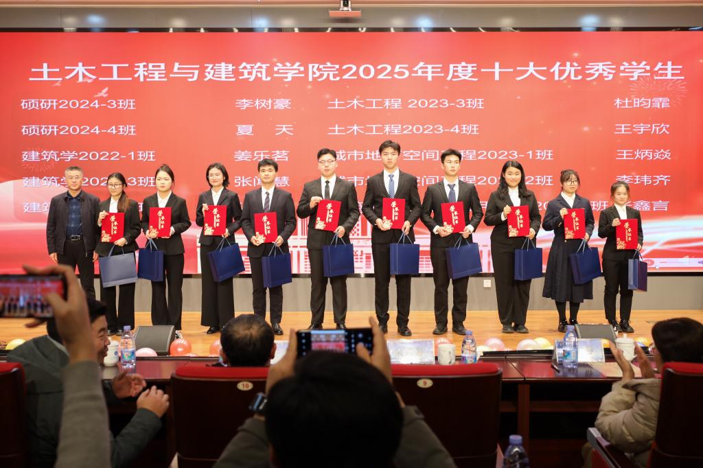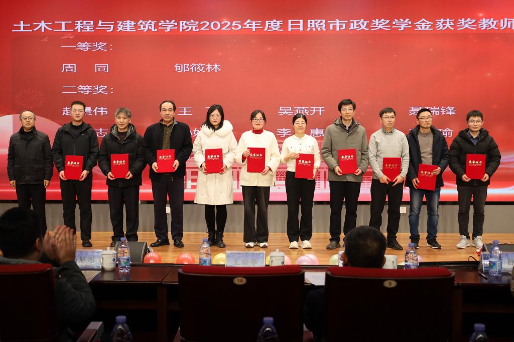 匠心筑梦强国路,青春奋进正当时。12月16日,beat365在线唯一官网于图书馆求新讲堂举办土建之星文艺汇演暨2025年学院十大优秀学生、日照市政企业奖教学金颁奖典礼,beat365在线唯一官网党委书记宋西路、院长王崇革、副书记兼副院长高静、副院长杨旭旭、学院教师代表及团委全体辅导员老师参加活动。