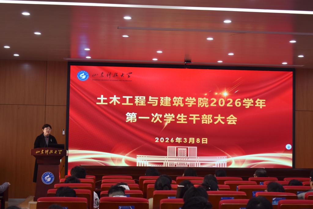 高静详细布置了2026年度学团重点工作以及新学期初期安全稳定工作。她强调,全体学生干部要深刻把握新学年工作的主线与方向,聚焦思想引领、学风建设、科技创新、宣传文化等核心领域,主动谋划,精准发力。要发挥好骨干作用,既要当好“领头雁”,以身作则,也要做好“勤务员”,服务同学,确保各项工作要求落地见效。刘泽群、董继先、李沛东三位老师分别就分管工作进行了汇报交流。刘泽群聚焦学院科技创新工作,系统回顾了上一阶段学院在科技竞赛、创新创业项目等方面取得的成果,分析了当前面临的机遇与挑战,并对新学期如何进一步激发学生创新潜能、完善科创支持体系进行了规划和部署。董继先围绕宣传思想文化工作,阐述了新学期加强思想引领、筑牢意识形态阵地、繁荣学院文化氛围的工作思路,强调要讲好土建故事,传播积极向上的学院形象。李沛东则重点汇报了学风建设方面的思考与安排,提出将通过强化制度建设、丰富活动载体、树立典型榜样等多措并举,持续营造勤学、笃行、求实的优良学风。