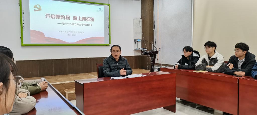 报告会上,王崇革院长从党的十九届五中全会的基本情况、党的十九届五中全会的主要精神、学习宣传贯彻全会的几点建议三方面进行宣讲。王崇革宣讲时说,党的十九届五中全会是我们党在全面建成小康社会胜利在望、全面建设社会主义现代化国家新征程即将开启的重要历史时刻召开的一次具有里程碑意义的会议。当前和今后一个时期,摆在我们面前的首要政治任务,就是认真学习好、贯彻好、落实好党的十九届五中全会精神,自觉把思想和行动统一到党的十九届五中全会精神上来,把智慧和力量凝聚到落实党的十九届五中全会提出的各项任务上来。在宣讲过程中,王院长以一名老校友、老学长的情怀,以一名兼职班主任、科大精神传承者的身份与同学们深入交流。