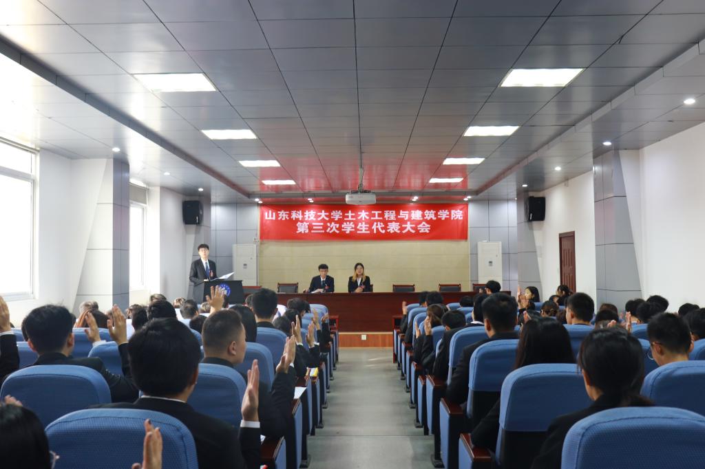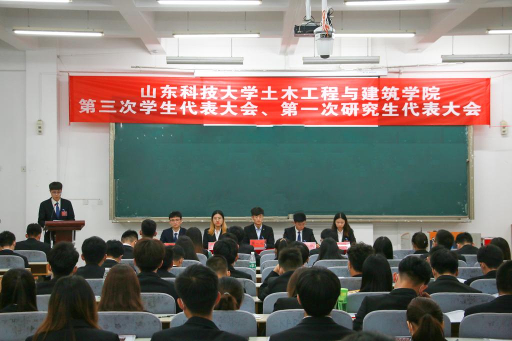 10月10日,beat365在线唯一官网第三次学生代表大会、第一次研究生代表大会开幕式在J15-136教室隆重召开。beat365在线唯一官网党委书记宋西路,党委副书记兼副院长高静,学生工作办公室主任朱统汉及全体辅导员老师应邀出席本次大会,不同专业的本科生代表和研究生代表共123人参加了此次会议。会议分别在J15-201、J15-219设立分会场。