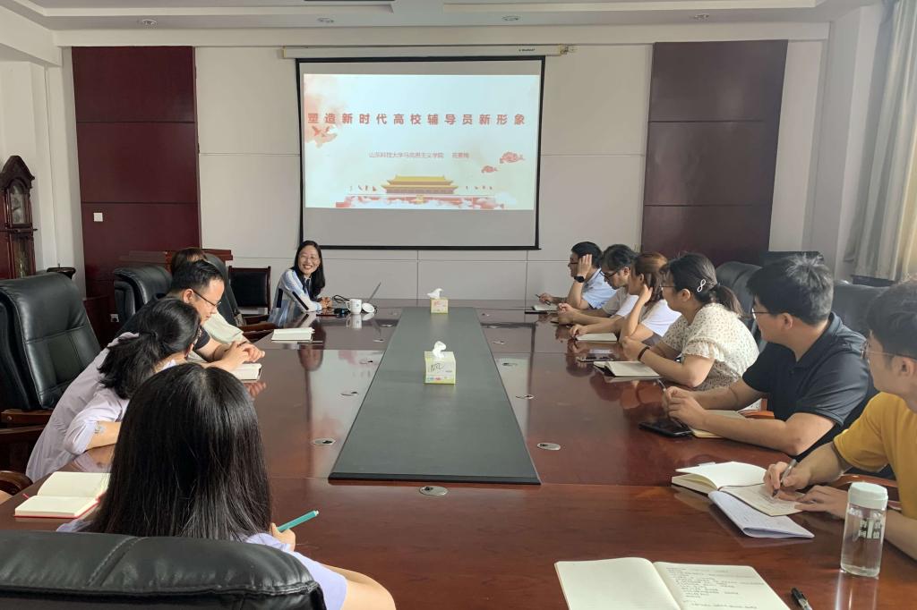 7月14日上午,beat365在线唯一官网举办辅导员“三省”学堂专业化提升专题培训班第二讲,邀请到中国高等教育学会公共关系专业委员会成员、青岛市思想政治名师宣讲团名师、马克思主义学院副教授苑素梅以《塑造新时代高校辅导员新形象》为题上课。本次培训由学院党委副书记、副院长高静主持,全体专兼职辅导员参加。