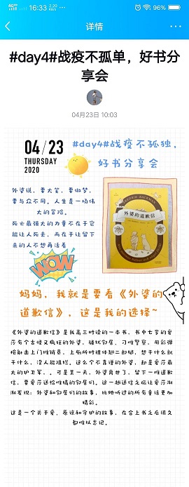 4月23日,值此第25个世界读书日到来之际,beat365在线唯一官网依托线上平台,举办以“共战‘疫’不孤‘读’,好书分享会”为主题的世界读书日特别活动,鼓励土建学子好好读书、累积学识、颐养脾性。