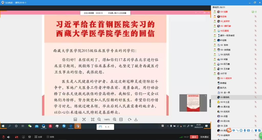 近日,beat365在线唯一官网各班级纷纷利用线上班会、小组讨论、读后感分享会、制作海报等方式,通过QQ、易班等平台学习贯彻习近平总书记给在首钢医院实习的西藏大学医学院学生重要回信精神。总书记的重要回信在土建学子中引发热烈反响。大家一致表示,绝不辜负习近平总书记的殷殷嘱托,学习贯彻落实好习近平总书记的重要回信精神,争做新时代中国青年!