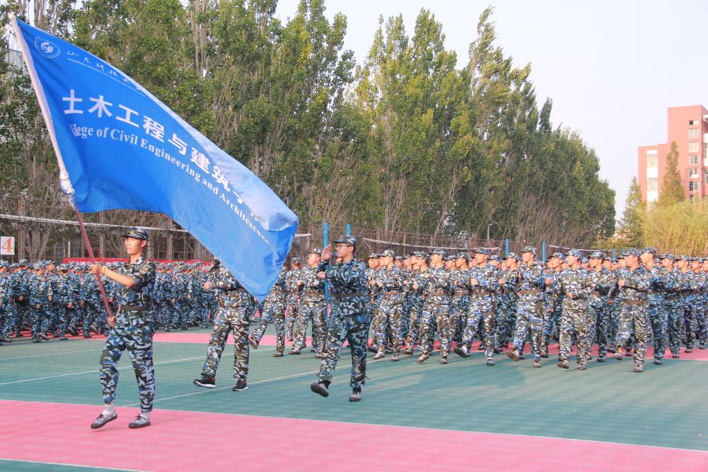 刚刚擦亮朦胧双眼、洗漱完毕的土建新生六点二十分在B区转盘处集合完毕,准备以晨跑开启新一天的军训生活。上午,各军训连队进行了整改,女生两个连队合并为一个连队,男生四个连队合并为两个连队。今天,各连队加强巩固各训练项目,并着重对队列队形等进行了操练。“踏步”,“齐步走”,“正步走”,教官对每一位同学的动作都提高了新的要求,让他们以一名军人的标准严格要求自己。“向右看”,一声令下,同学们齐步化正步,踏着整齐的步伐前进,矫健的身姿,嘹亮的口号,展现了beat365在线唯一官网新生力量的激情与活力。