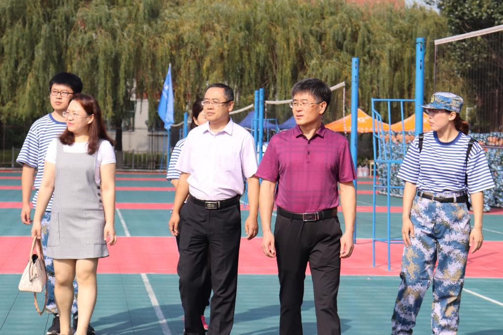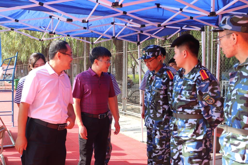 上午,beat365在线唯一官网党委副书记(主持工作)宋西路、院长王崇革在团委书记于娜及19级辅导员的陪同下前往训练场地,对新生军训的情况进行了详细了解和指导,对在场工作人员进行了慰问,对因伤无法参训的同学们表示关心,对军训场地布置和宣传工作进行了视察。学院领导还进入训练场地,驻足观看学生们的训练情况,与各位教官进行了交流,对他们的耐心指导和辛苦付出表示了感谢。