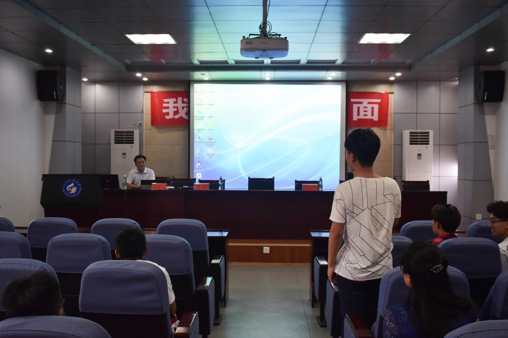 论坛以中铁二十局集团的宣传片为开场,使在场同学们初步了解了集团悠久的发展历史和雄厚的综合实力。随后,宋家军从公司介绍、福利待遇、招聘程序三方面切入,结合同学们最关心的问题和社会实际展开了叙述。在公司介绍板块中,他详细介绍了企业当前取得的资质,以及企业所涉及的行业领域和国内海外市场,简单概述了公司项目工程的具体内容和进展;在福利待遇方面,他从五险两金、交通伙食补贴、薪酬标准等方面讲述了公司福利政策的统一性和灵活性;关于招聘程序,他向同学们介绍了公司招聘的专业范围、基本要求以及合同签署的时间和种类。