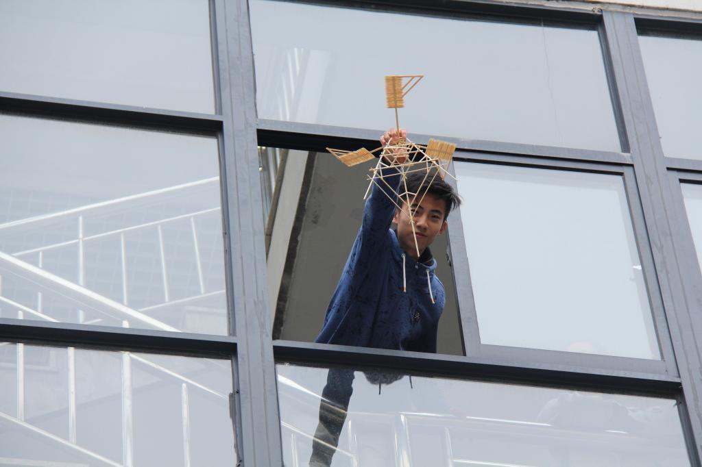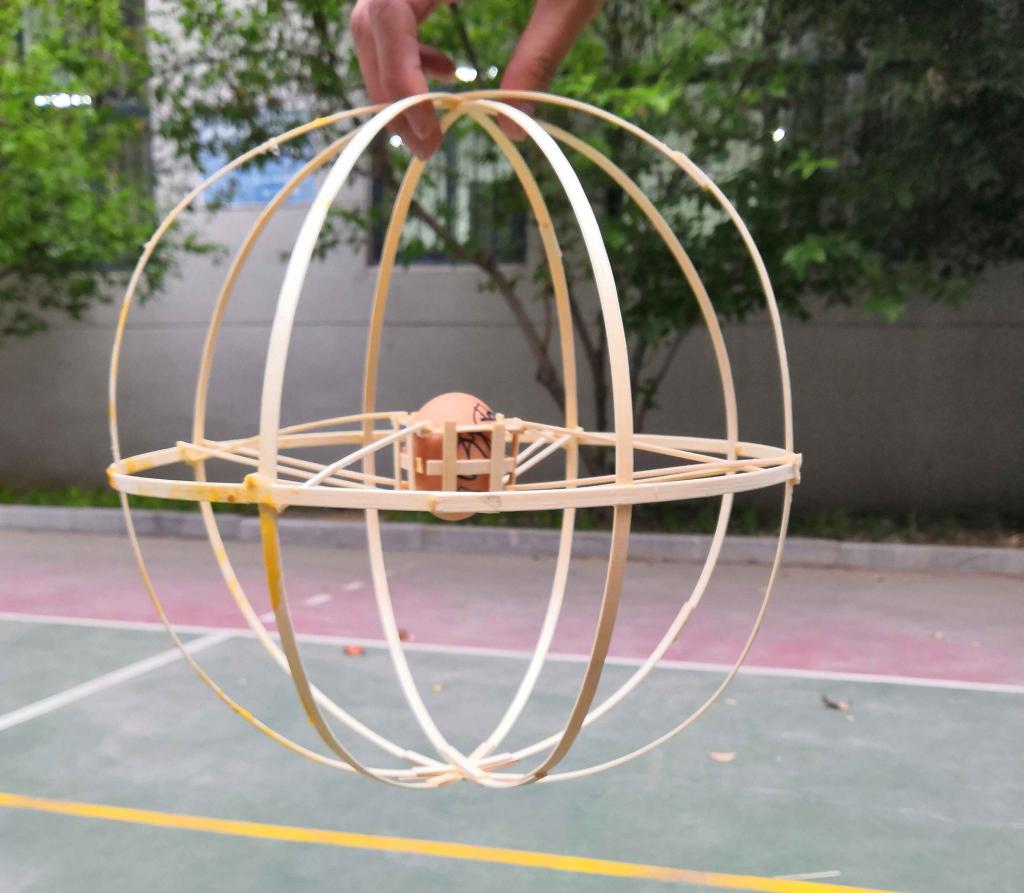 比赛最大的吸引力来自新颖有趣的赛题——高空护蛋。该赛题要求各参赛队根据主办方提供的竹条、牙签、胶水、鸡蛋等材料制作一个护蛋结构(要求鸡蛋可视度在40%以上,结构类型不限),以鸡蛋从15米高空落下后的完好程度和结构的稳定性为评分标准。比赛主要分为三个阶段:4月24日18:00-22:00,beat365在线唯一官网科技学习部同学为270个参赛队发放了比赛材料;25-26日,各参赛队自由制作模型,他们不分昼夜地设计和制作模型、进行模拟实验,不断进行修改和完善;27日为模型检测。模型检测当天,参赛团队签到后,工作人员对结构进行称重(要求模型不得超过220g),随后评委从外观的美感程度、结构的稳定程度进行打分,打分完毕,选手自行在15米左右的高空将模型扔下,最后评委老师再次根据鸡蛋和模型破损程度打分。