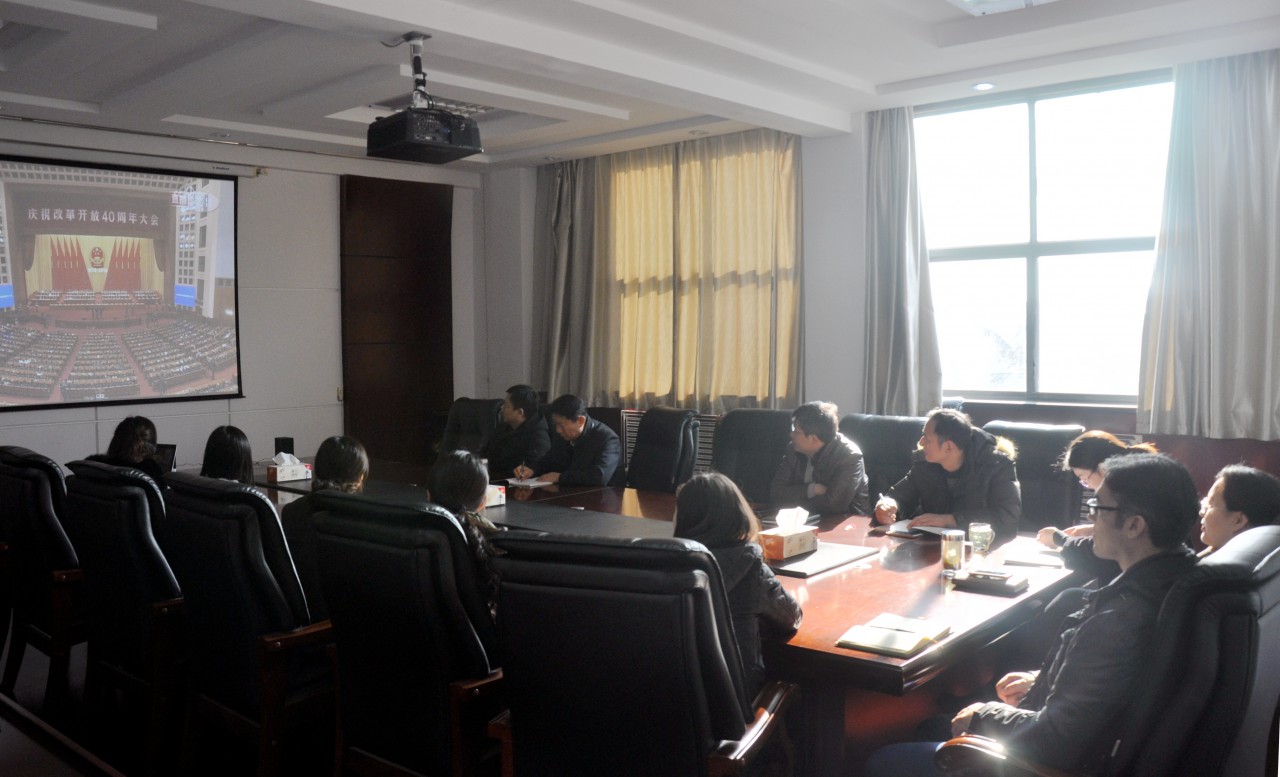 12月18日,beat365在线唯一官网组织院党委理论学习中心组成员和全体专兼职辅导员在J15-316会议室集中收看了庆祝改革开放四十周年大会。