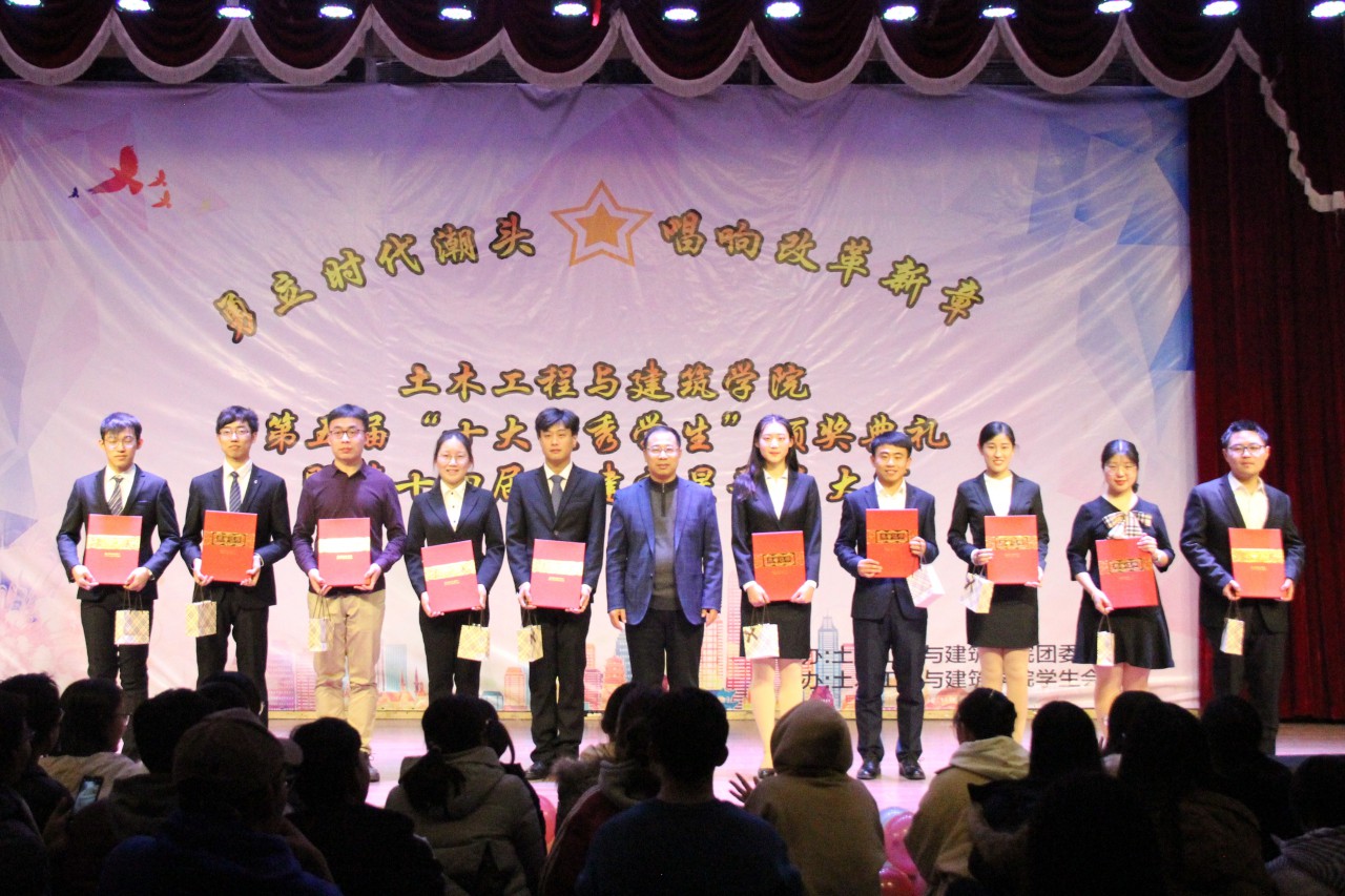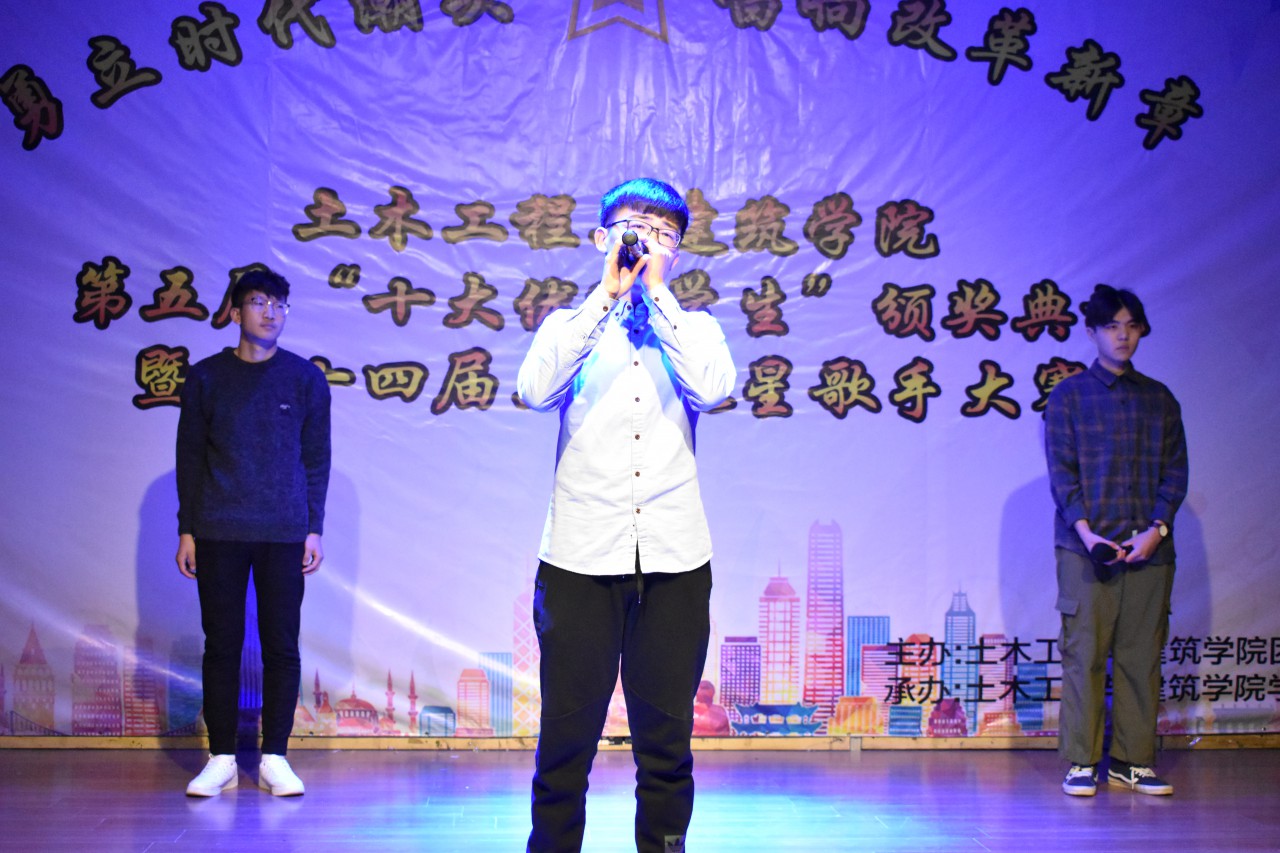 12月12日晚,beat365在线唯一官网在大学生活动中心成功举办第五届“十大优秀学生”颁奖典礼暨第十四届“勇立时代潮头,唱响改革新章”土建之星歌手大赛。到场的嘉宾有beat365在线唯一官网乔卫国院长、郝亮副书记、王崇革副院长、党政办郝兆青主任、团委于娜书记及团委所有专兼职辅导员。担任本次活动的评委有校大学生艺术团副团长闫肖帆、beat365在线唯一官网学生会主席陈子璇、校大学生艺术团声乐队副队长陈登阳、校大学生会素质拓展部主席王轶涵、校学生会素质拓展部副部长孙钰鹏、校第十四届校园歌手大赛冠军王博学、校N.O.B街舞协会会长孙小翔。
