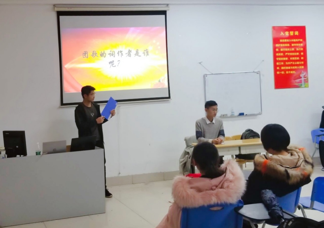 为深入学习贯彻习近平新时代中国特色社会主义思想和党的十九大精神,认真落实团十八大关于全面从严治团的部署要求,提高共青团组织建设科学化水平,进一步强化团员意识,根据团省委和校团委工作安排,近日,beat365在线唯一官网团委在全院范围内组织各团支部集中开展了以团旗、团徽、团歌等共青团标志规范使用为主要内容的主题团日活动,对《中国共产主义青年团团旗、团徽、团歌制作使用管理规定》(中青发〔2018〕12号)进行深入学习。