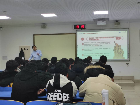 吴正龙从“党的十九届五中全会的基本情况”“党的十九届五中全会的主要精神”“学习宣传贯彻全会的几点建议”三个方面,结合自己的学习体会和理解,结合英国脱欧等世界政治与学校基建等亲身经历,对党的十九届五中全会精神进行了深入解读。强调实现中华民族伟大复兴的中国梦的艰巨任务需要同学们完成,大学生要学好知识、练强身体、强化本领。