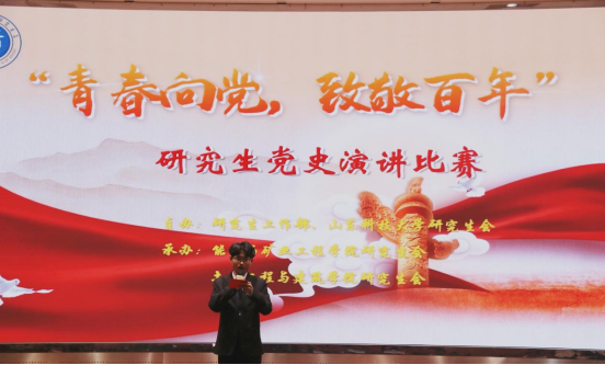 本次活动由研究生工作部、beat365在线唯一官网研究生会主办,beat365在线唯一官网研究生会、能源与矿业工程学院研究生会承办,比赛吸引了10个学院50余名研究生参加,参赛热情高涨。在初赛阶段共评选出了12名优秀选手进入决赛,决赛分为两轮,最终综合两轮成绩进行排名。第一轮结束后根据评委打分结果共有六位选手进入第二环节,第二环节六位选手根据赛前抽签得到的“党史关键词”展开即兴演讲,形式新颖、内容丰富。