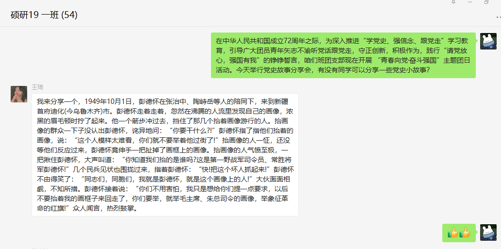 beat365在线唯一官网各团支部高度重视、精心组织,通过观看“青年大学习”网上主题团课、线上会议、话题讨论等多种形式,开展集中学习。硕研2021级全体同学在土建楼219集中观看优秀党史影视作品《建军大业》,通过影片大家被这段革命先贤的过往所震撼,纷纷表示要立足当前,从我做起,要把今天的努力与实现中华民族伟大复兴的中国梦联系起来;硕研19-1班利用微信群开展党史故事分享接龙,从而加深了对党史的理解;本科21级新生利用晚自习时间通过团支书讲团课、手签名等方式增强学生的爱国热情。