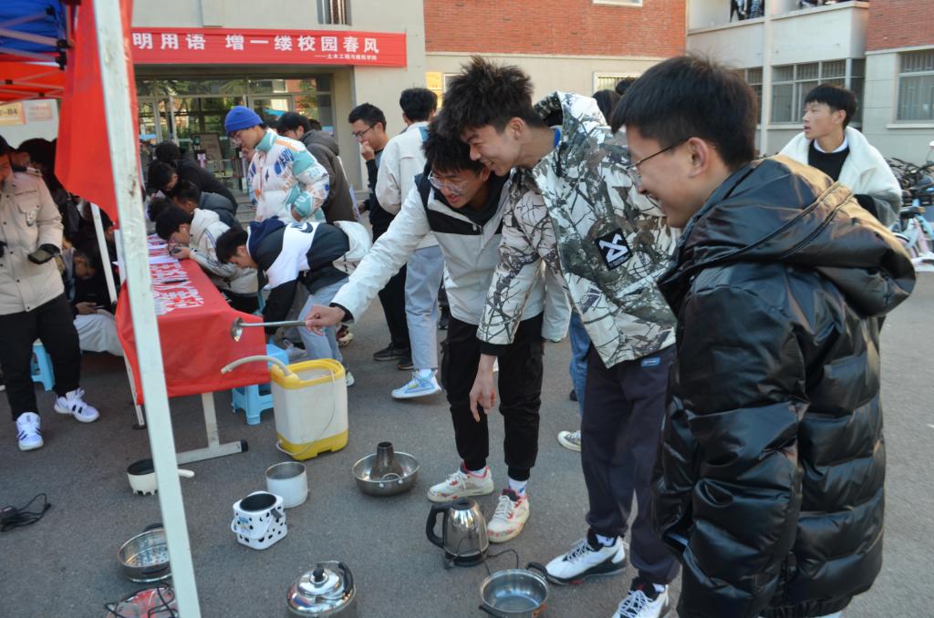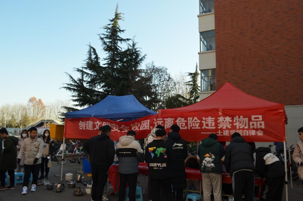 为增强同学们的安全意识,提高同学们对安全防范的认知水平,营造和谐安全的校园环境,11月23日下午,beat365在线唯一官网自律会在B2-B4宿舍楼前开展“创建文明安全校园,远离违禁危险物品”安全教育主题活动。学生工作办公室主任朱统汉、辅导员刘超到场进行了细致的指导,传达了学校安全工作精神。