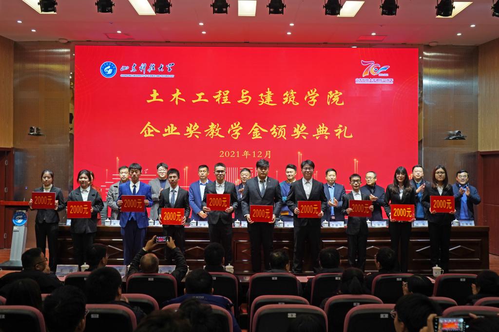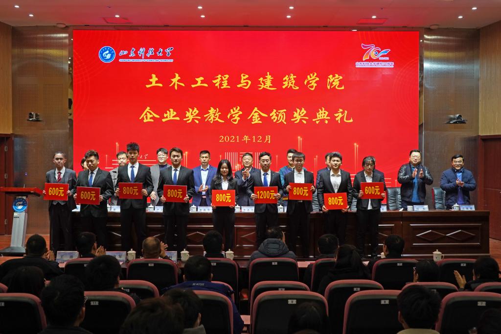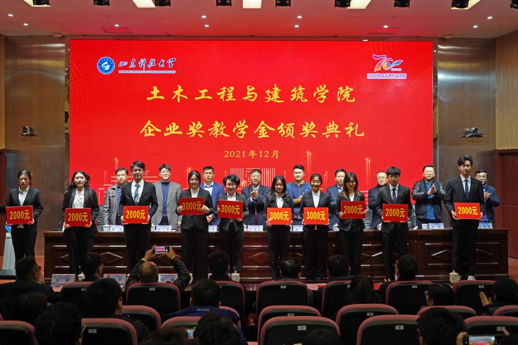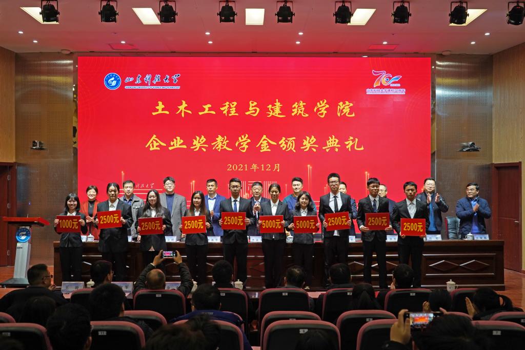12月19日,beat365在线唯一官网企业奖教学金颁奖典礼在J9-144报告厅举行。山东华滨建工有限公司党支部书记李志连、烟台平安信息工程职业技能培训学校校长宋洋、日照市政集团常务副总经理娄善华、山东省路桥集团青岛分公司党总支书记曹建军、校团委书记尹立明、学生工作处副处长靳凯、研究生工作部副部长刘松、合作发展处副处长王荣超、beat365在线唯一官网师生代表参加了本次颁奖典礼。典礼由beat365在线唯一官网党委副书记高静主持。
