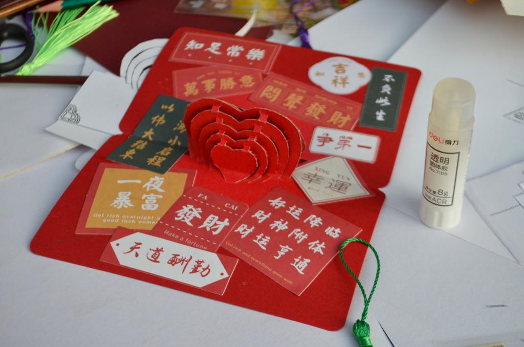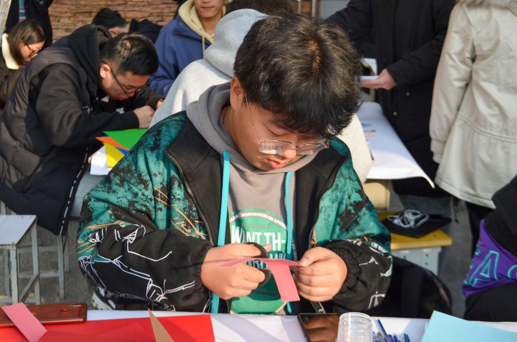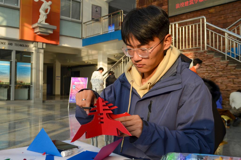 土建学子在活动中尽情地展现自己思维和想法,他们利用手绘、剪纸、黏土和纸雕等方式进行制作,创作出美丽的手工装饰品。他们将所做手工装饰品放入贺卡,并通过颜料、贴纸和流苏的装饰,使作品更具美感。学生们全身心地投入到活动中,用自己的心灵手巧展现了活动主题,并将新年祝福和愿望写在贺卡上。