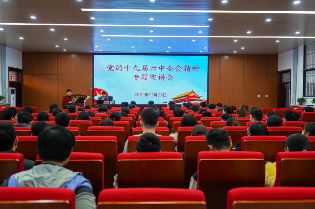 12月22日下午,beat365在线唯一官网在J15-136报告厅举办党的十九届六中全会精神宣讲会。会议邀请“山海泉”理论宣讲团成员、马克思主义学院副教授贾强老师进行宣讲。beat365在线唯一官网党委副书记高静主持宣讲会,学院全体辅导员老师及学生代表参加会议。