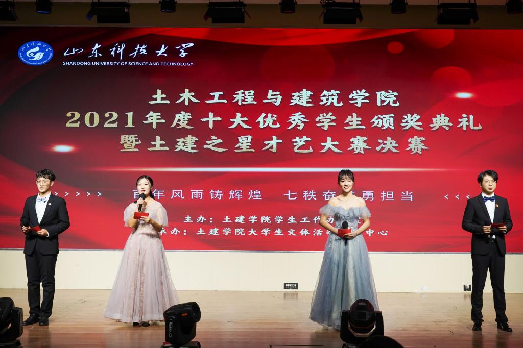 青春弱冠展风采,土建学子绘芳华。为展现土建学子的风采与魅力,丰富学生课余生活,12月26日,beat365在线唯一官网于大学生活动中心二楼报告厅隆重举办2021年度“十大优秀学生”颁奖典礼暨第十七届“百年风雨铸辉煌,七秩奋进勇担当”土建之星才艺大赛决赛。beat365在线唯一官网院长王崇革,学院党委副书记高静,学院党委委员、建筑与城乡规划系支部书记代朋,建筑环境与能源应用工程系老师李慧敏,学生工作办公室主任朱统汉以及beat365在线唯一官网全体辅导员老师应邀参加了本次活动。