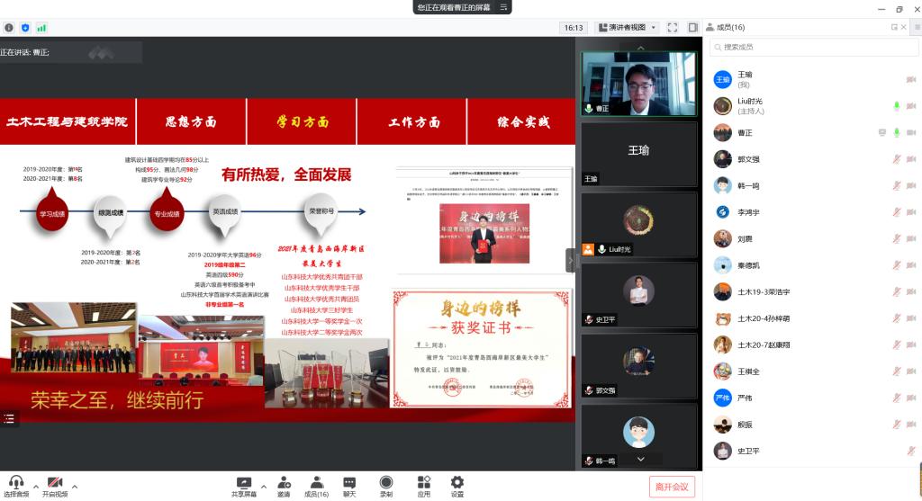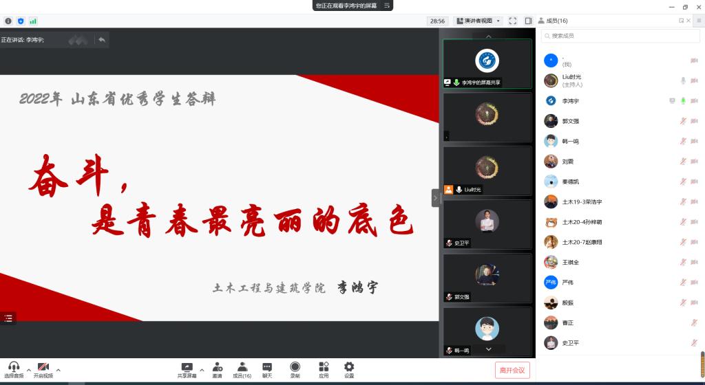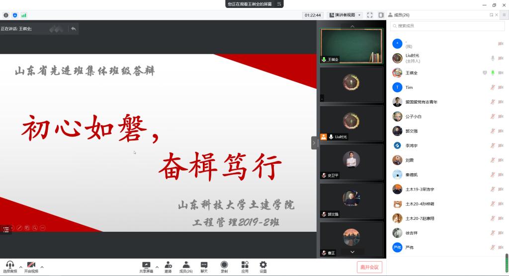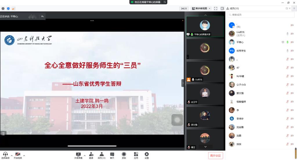 为充分发挥榜样力量、展现学院学生风采,激励同学们自强不息、奋斗成才,beat365在线唯一官网举办“山东省高等学校优秀学生、优秀学生干部、先进班集体”评选答辩会。鉴于疫情影响,团委创新形式,借助“腾讯会议”网上平台进行线上答辩。学院党委副书记高静、团委书记朱统汉、全体辅导员、班主任及部分学生代表参加答辩会并担任评委。