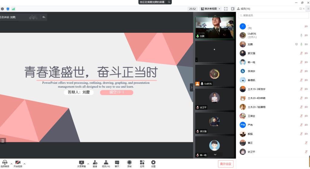 经过前期自主申请、初步评比筛选,共有13名本硕学生进入答辩环节。他们从思想动态、学习状况、学生组织工作、科研创新、社会实践和对未来的展望等多个方面全方位、多层次地展现自己。稳居前列的学习成绩、优异的科研成果、丰富的志愿服务和社会实践经历……答辩过程中,候选人自信大方,4分钟的答辩既展示了自己取得的成绩,又分享了奋斗史上的心路历程和感悟收获,让评委老师和同学们充分看到了他们身上的发光点,感受到他们一路走来披荆斩棘的坚持。紧接着进行的是优秀班集体的答辩,答辩人就班级特色制度、班级团日活动、班级学风建设等多个方面详细具体的介绍了班级的优秀氛围与成果,获得老师和同学们的一致好评。