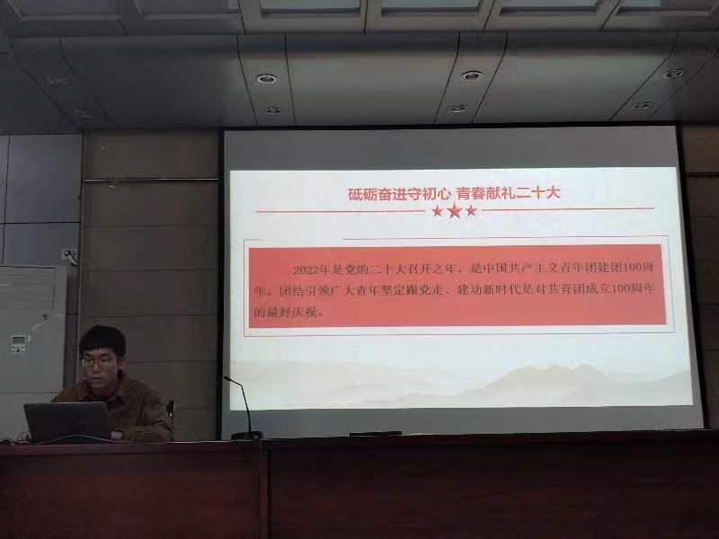 会上,严伟首先介绍了2022年是党的二十大召开之年,是中国共产主义青年团建团100周年。他鼓励在场同学作为新时代青年学生要在党的领导下和共青团的指导下,团结引领广大青年学生坚定跟党走、建功新时代。接下来,严伟从“百年奋斗,伟大成就”和“勇担使命,强国有我”两个方面展开分享,通过回顾党的百年历程,向同学们讲述中华民族任人宰割、饱受欺凌的时代一去不复返了,中华民族迎来了从站起来、富起来到强起来的伟大飞跃。最后,严伟从“立大志、明大德、成大才、担大任”四个方面号召同学们要肩负历史使命,坚定前进信心,努力成为堪当民族复兴重任的时代新人。
