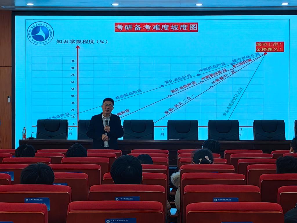 学院组织各专业举办考研复试与调剂交流会,邀请专业教师、往届上岸学生,结合专业方向为同学们提供备考辅导,在复试流程、仪表仪态、语言表达、信息获取等方面给予指导。