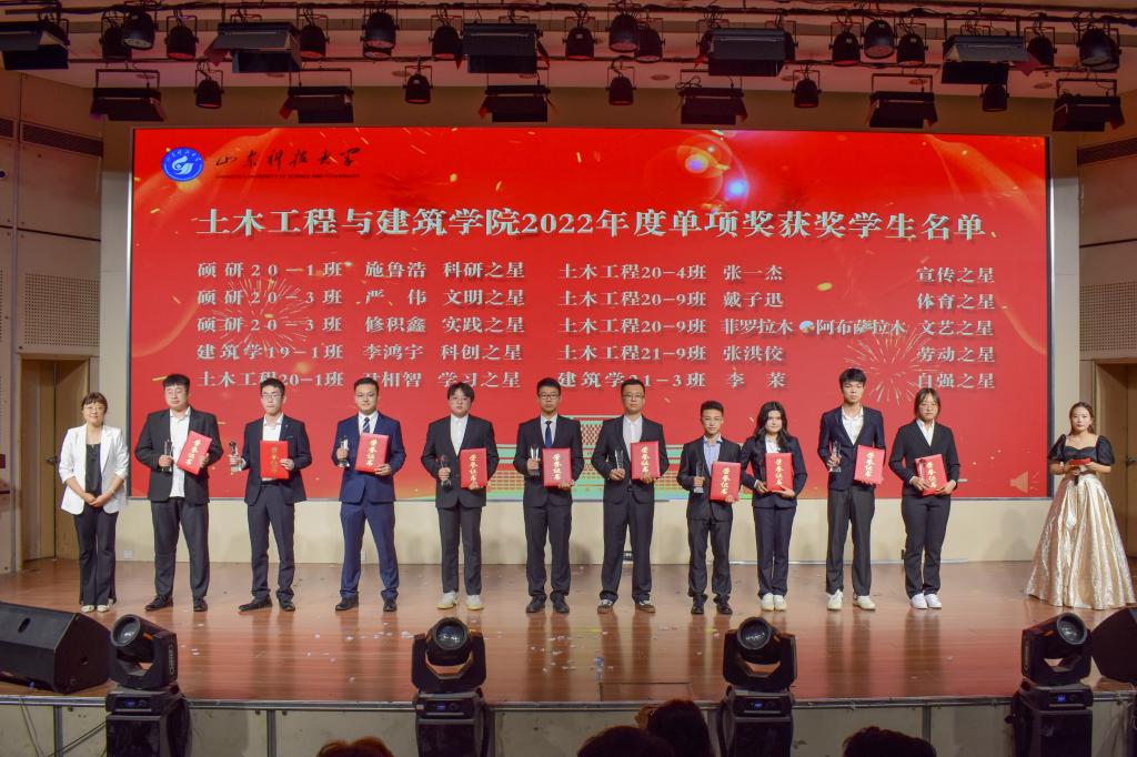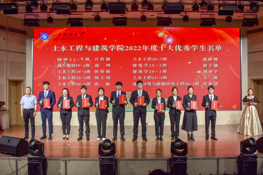 在“十大优秀学生”颁奖环节中,一段段VCR精彩纷呈,展示了beat365在线唯一官网十大优秀学生的傲人风采,展现了土建学子担当时代责任和勇于砥砺奋斗的精神风貌。获得beat365在线唯一官网“2022 年十大优秀学生”称号的分别是亓传德、赵珂、刘士琦、孙梓萌、徐航、赵康翔、宋彬倩、赵子涵、刘承宇、王森。他们是土建学子的优秀代表,他们的优秀事迹激励广大同学奋勇争先、一路向前、永不言败。