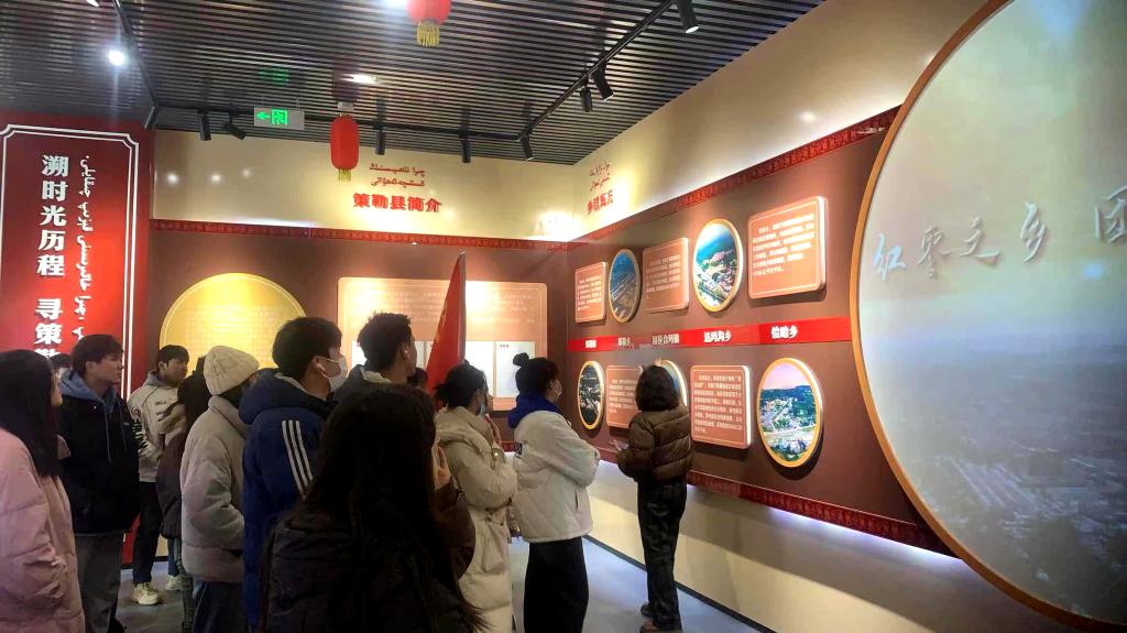 在新疆维吾尔自治区和田地区策勒县,土建学子参观了当地铸牢中华民族共同体意识主题教育馆,通过文字、图片、音视频、互动体验和工作人员讲解等多种形式,土建学子深切体悟到“56个民族是石榴籽,中华民族是整体的石榴”“各民族像石榴籽一样紧紧抱在一起”“中华民族一家亲,同心共筑中国梦”的深刻内涵,更加坚定了自己争当铸牢中华民族共同体意识的宣传者、维护者和实践者的青春之责。