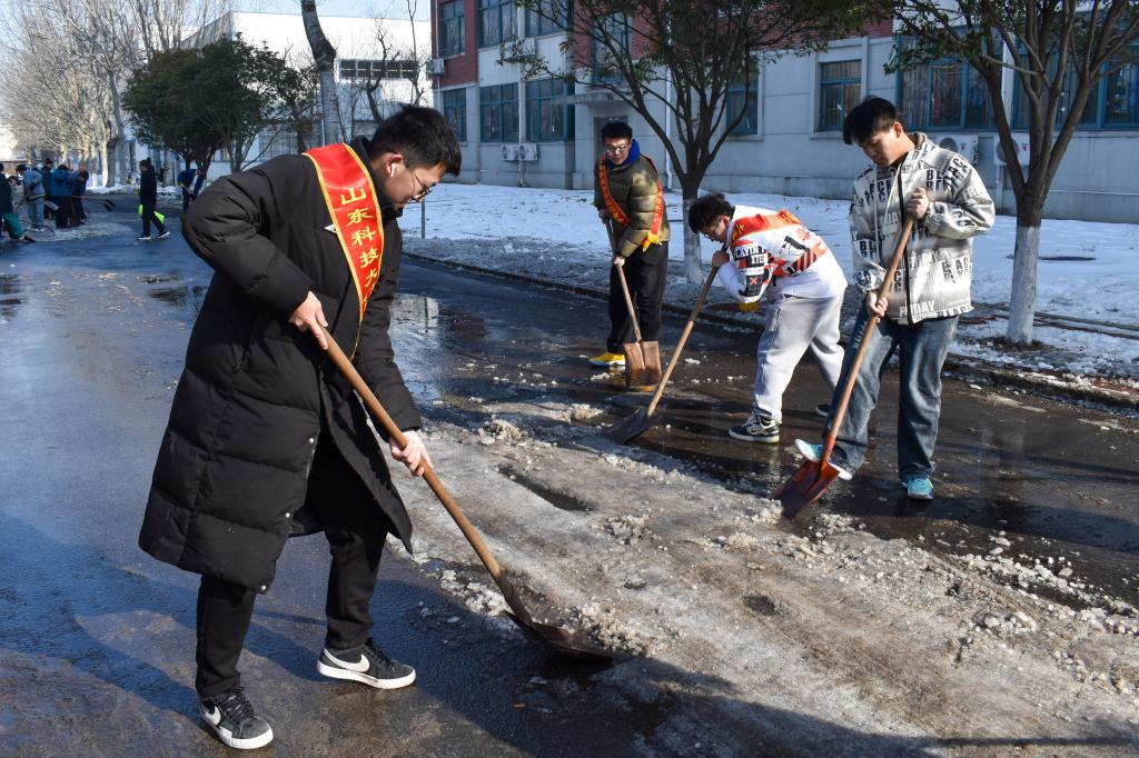 “弘扬雷锋精神,志愿奉献青春”主题志愿服务月系列活动(一)——学院青年志愿者“清冰除雪”,寒日扫出校园“暖心路”