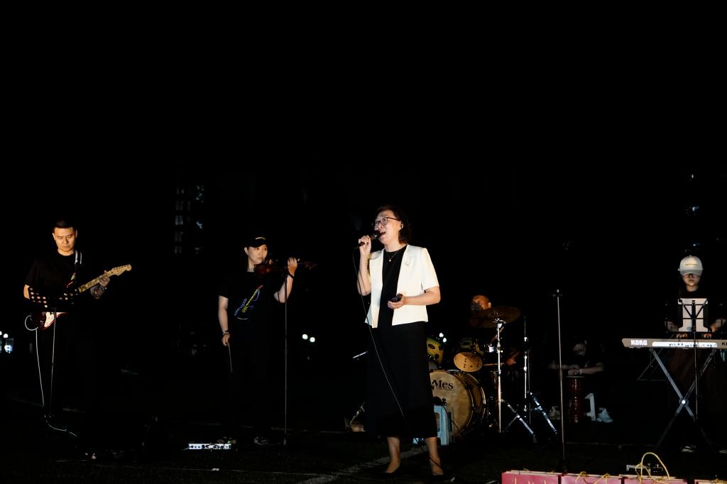 “灵感”乐队30年后因初心重回母校,再次唱响独属于“灵感”的声音。《光辉岁月》《AMANI》《真的爱你》等歌曲,带大家回顾了他们在校园排练的浪漫时光。孔寅老师献上独唱《掌声响起来》,回忆了她在科大校园的生活,向毕业生送上寄语和祝福。大家被这热情的氛围所感染,跟随音乐节拍挥舞手臂、轻声哼唱。音乐会最后,一首《再见》为此次活动画上圆满的句号。