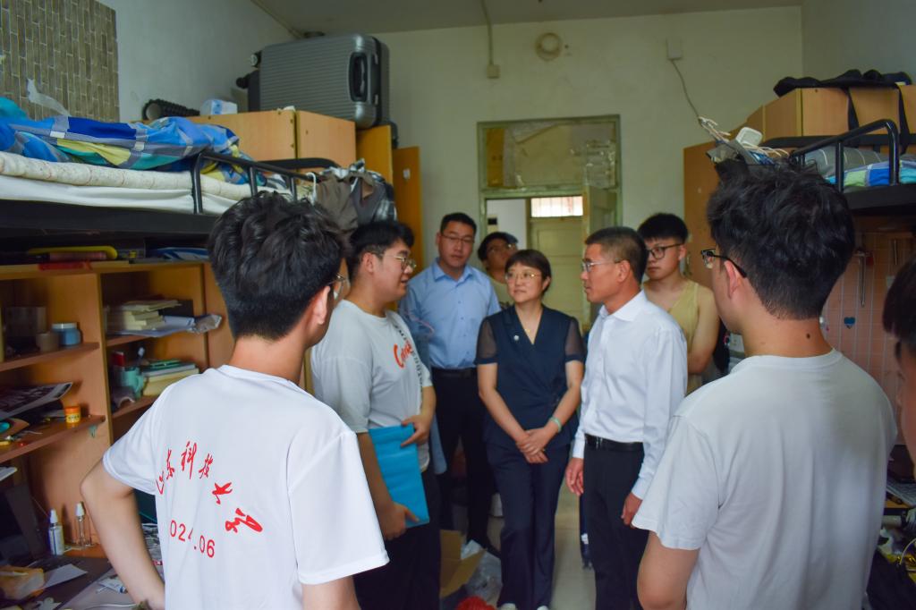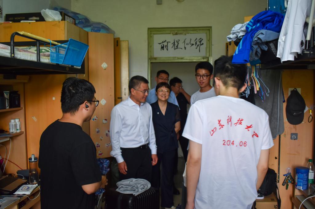 6月20日,在2024届毕业生即将毕业离校之际,学院党委书记宋西路,党委副书记兼副院长高静,学生工作办公室主任、团委书记王贝贝,毕业班辅导员老师张翌、刘泽群深入学院毕业生宿舍,代表学院看望慰问毕业班学生,为即将踏上人生新征途的学生送去真切关怀和温暖祝福。