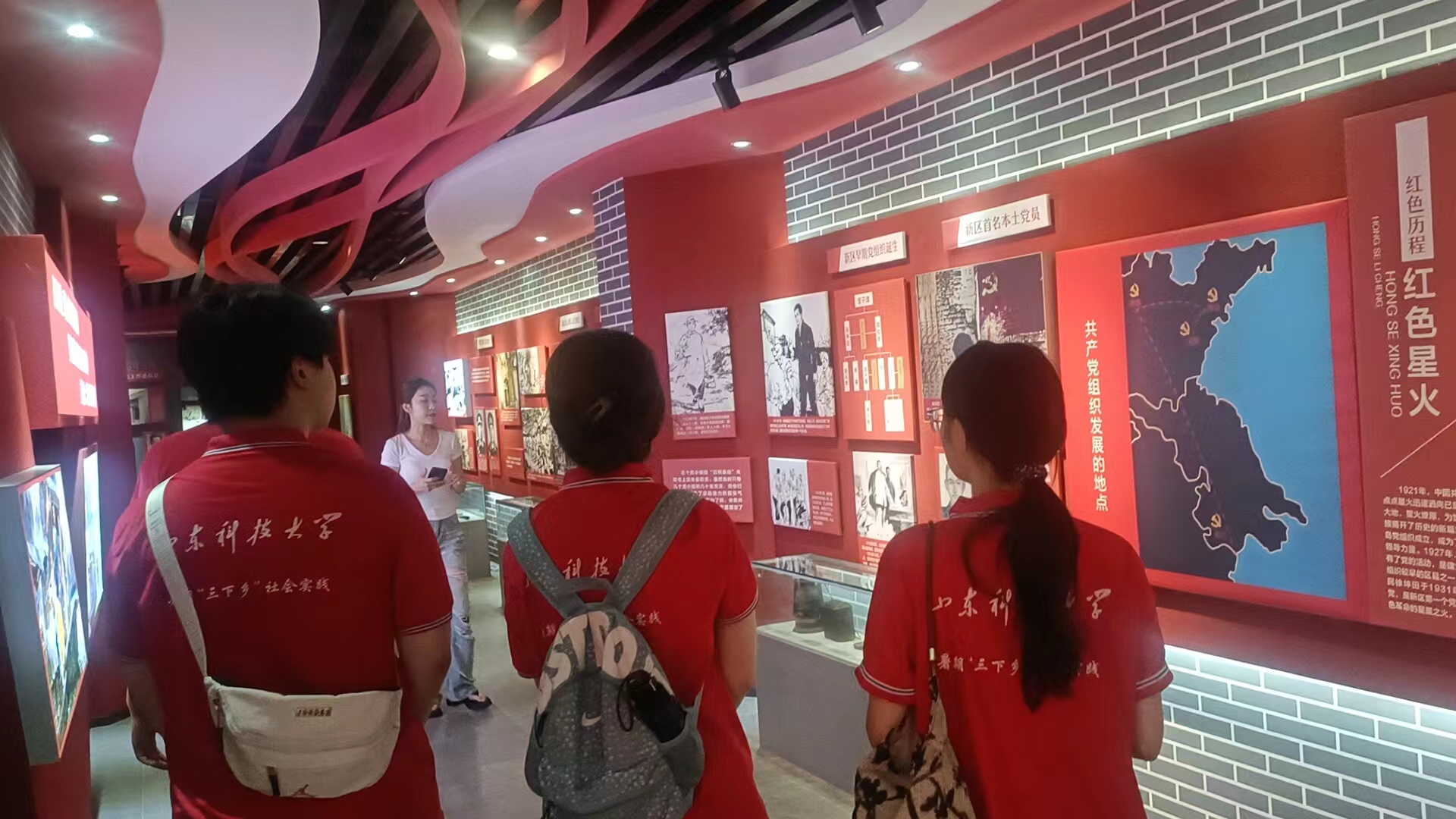 为进一步深入了解和弘扬红色文化,7月23日下午,“情暖桑榆”社会实践队赴泊里镇党性教育基地——红色记忆展馆开展党史学习教育,聆听发生在泊里大地上的红色往事。参观期间,讲解员从红韵泊里、开放泊里与聚融泊里3个篇章展开介绍。从荒凉偏僻的小渔村到初具规模的泊里新港城,悠久的抗战史实、优秀的传统文化及泊里人民奋斗的精神使团队成员们受到了洗礼。