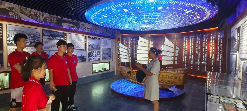 讲解员介绍潍坊侨史馆展厅