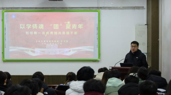 为深入学习贯彻习近平新时代中国特色社会主义思想,引导团员青年群体在实践中树立正确的人生观和价值观,12月2日,beat365在线唯一官网团委书记王贝贝在J15-201带来以“以学铸魂‘团’聚青年——如何做一名优秀的共青团干部”为主题的团课宣讲,学院部分团支部委员及学院青马班全体学员参加活动。