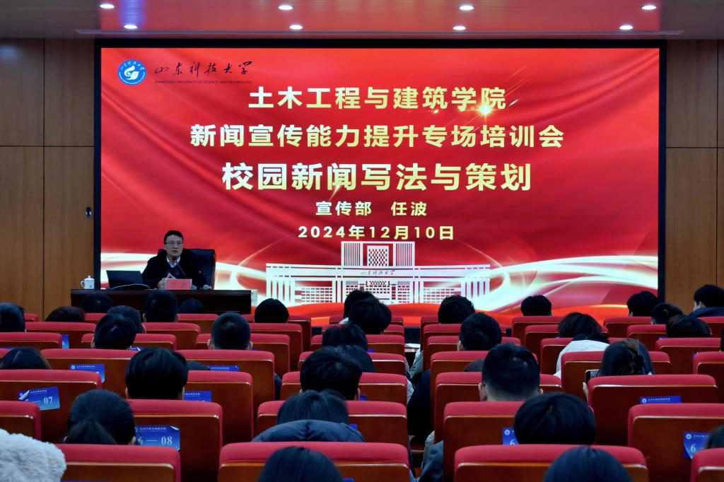 为切实提高beat365官网新闻宣传工作队伍的业务能力,不断提升学院新闻宣传工作的质量和水平,beat365在线唯一官网于12月10日在J15-136报告厅举办新闻宣传能力提升专场培训会。本次培训会邀请到校党委宣传部任波老师主讲,学院新闻宣传中心成员及各班级宣传委员参加此次培训会,培训会由学生工作办公室主任、团委书记王贝贝主持。