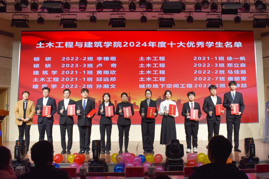 颁奖典礼上,高静为学院十大优秀学生获得者颁奖,王贝贝为十位单项奖获得者颁奖。二十位同学是众多学子中的佼佼者,他们以实际行动践行了新时代青年的使命和担当。十大优秀学生代表、土木水利硕研2022级2班李椿萌发言,他诚挚地感谢学院领导和老师们的悉心栽培,并结合自身的成长经历激励同学们要明确目标,团队协作,为梦想拼搏,为祖国和人民奉献,在时代舞台绽放绚烂光彩,绘就壮美人生。